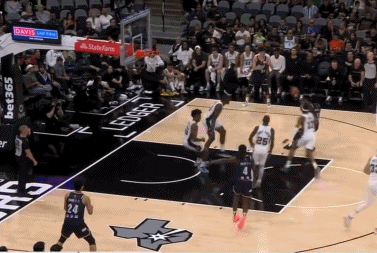 第三节,陈国豪底角获得空位三分的机会后,果断出手命中,拿到本场比赛的首次得分。随后,陈国豪继续在外线三分发炮,马刺未能第一时间完成协防送给陈国豪三次罚球的机会,全部命中。